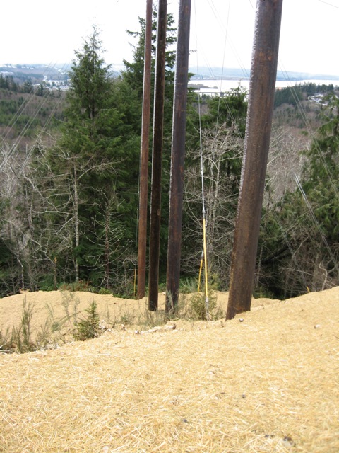 SWP Environmental Services was hired to complete restoration work at areas where crews performed clean up and repaired damaged transmission lines from the December 2007 storm which affected the Grays Harbor PUD areas in Washington. Responsibilities include erosion control at tower locations, re-contouring tower locations and roads, seeding and mulching, spreading straw and installing silt fence to protect various streams.